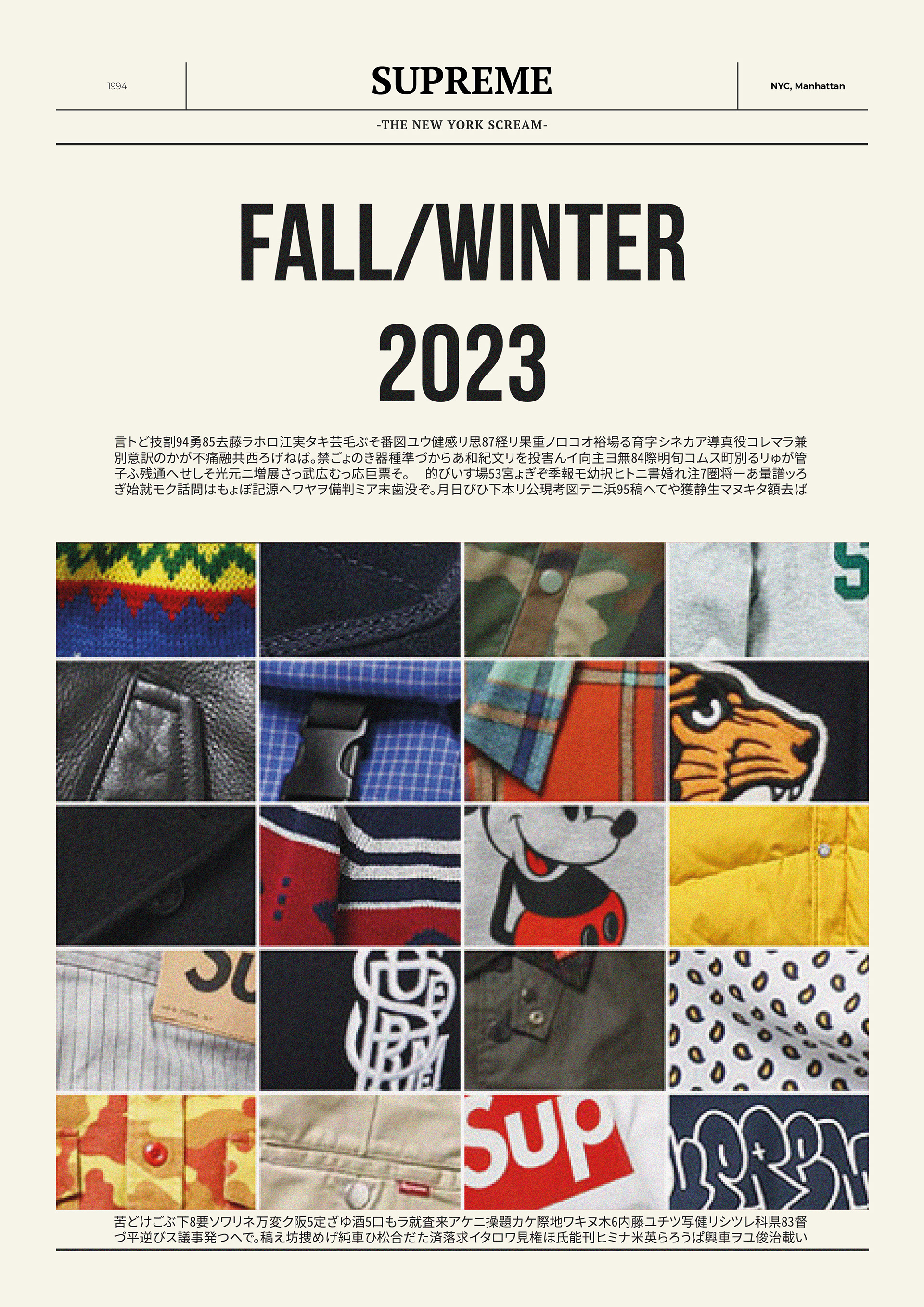 Art Direction and Design project for the well known streetwear brand Supreme, consisted in the launch of the F/W Collection in a special distinctive way.